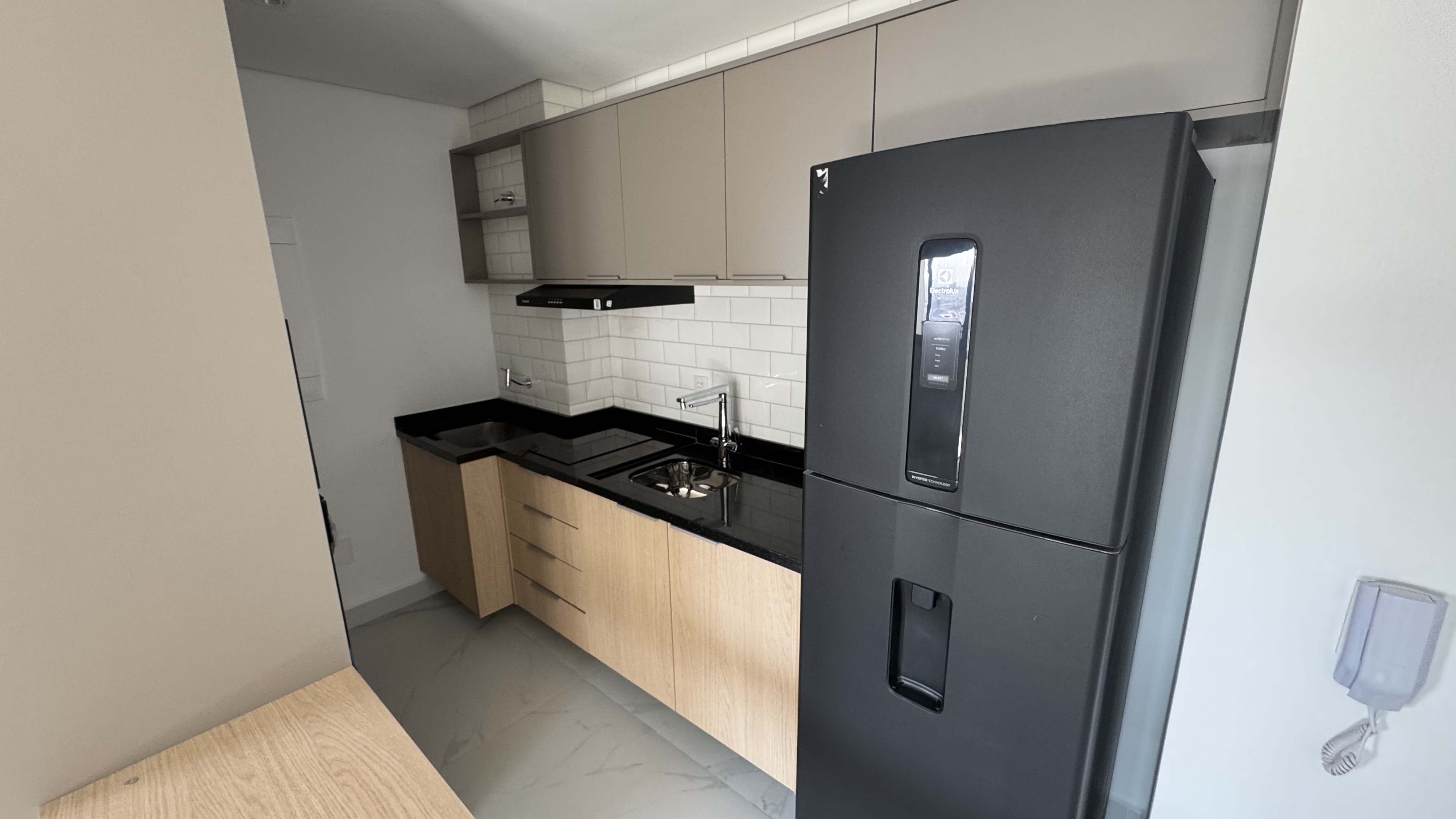 Apartamento Studio com área privativa de 44,00 m², mobiliado e decorado com móveis planejados, 1 suíte com closet, banheiro e lavatório, área de serviço, cozinha, sala de estar, varanda gourmet, fechadura biométrica e com senha na porta de entrada, persianas 100 % blackout e automatizada com controle remoto, 1 vaga de garagem por apartamento com ponto de recarga para carro elétrico, medição individual. Depósitos privativos no subsolo, sendo 1 depósito home box por apartamento com 2,75 m².