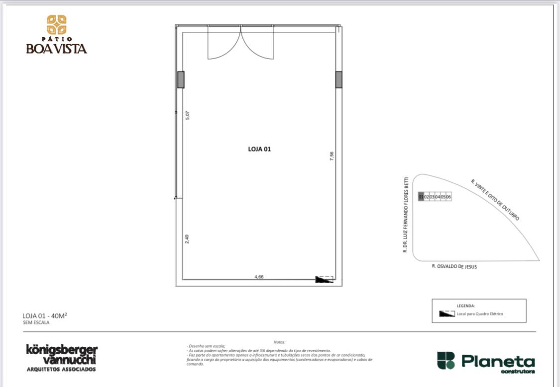 Área privativa: 40,00 m² - loja comercial com 2 vagas de uso coletivo, sendo 1 dela de uso PNE.