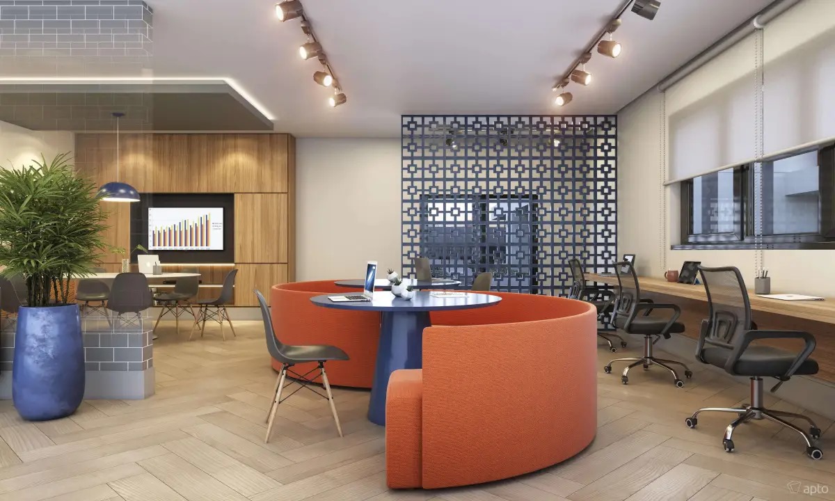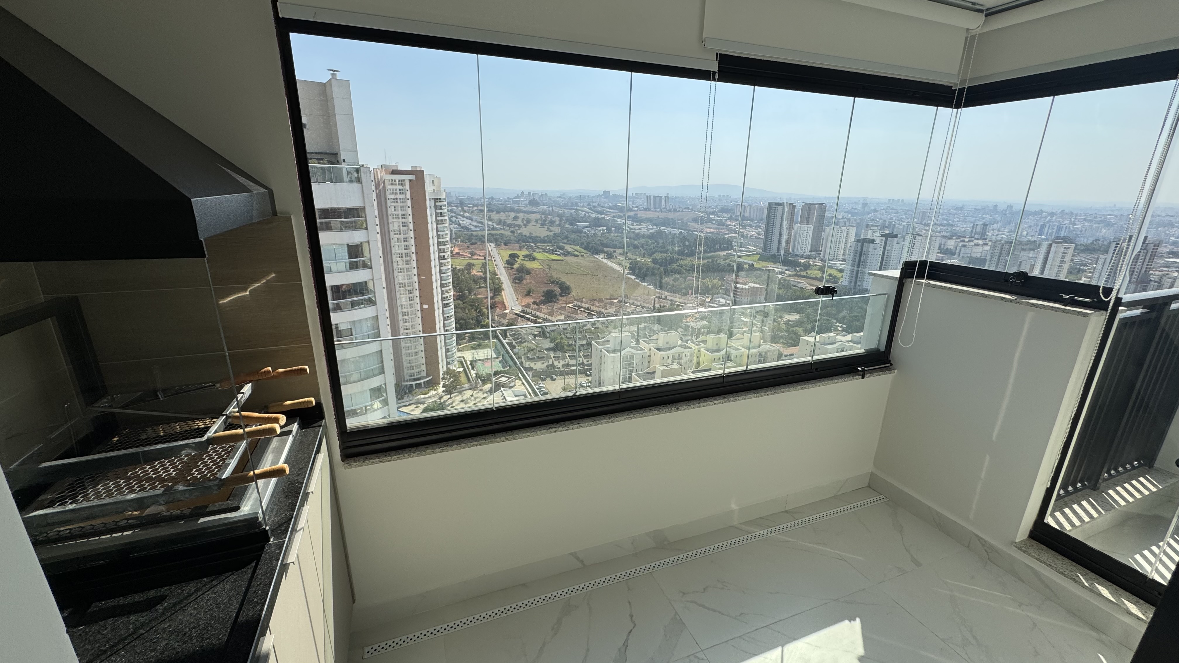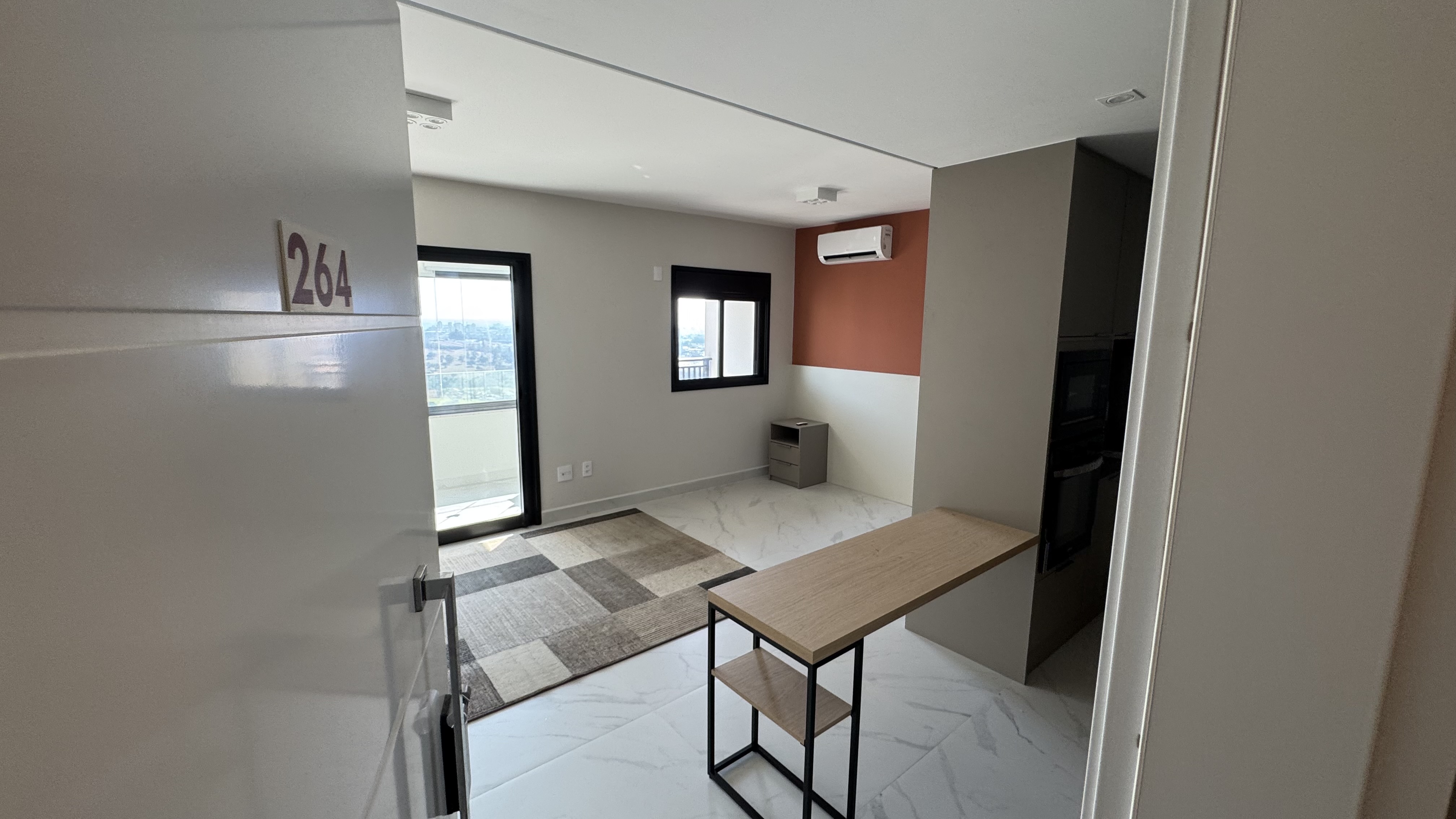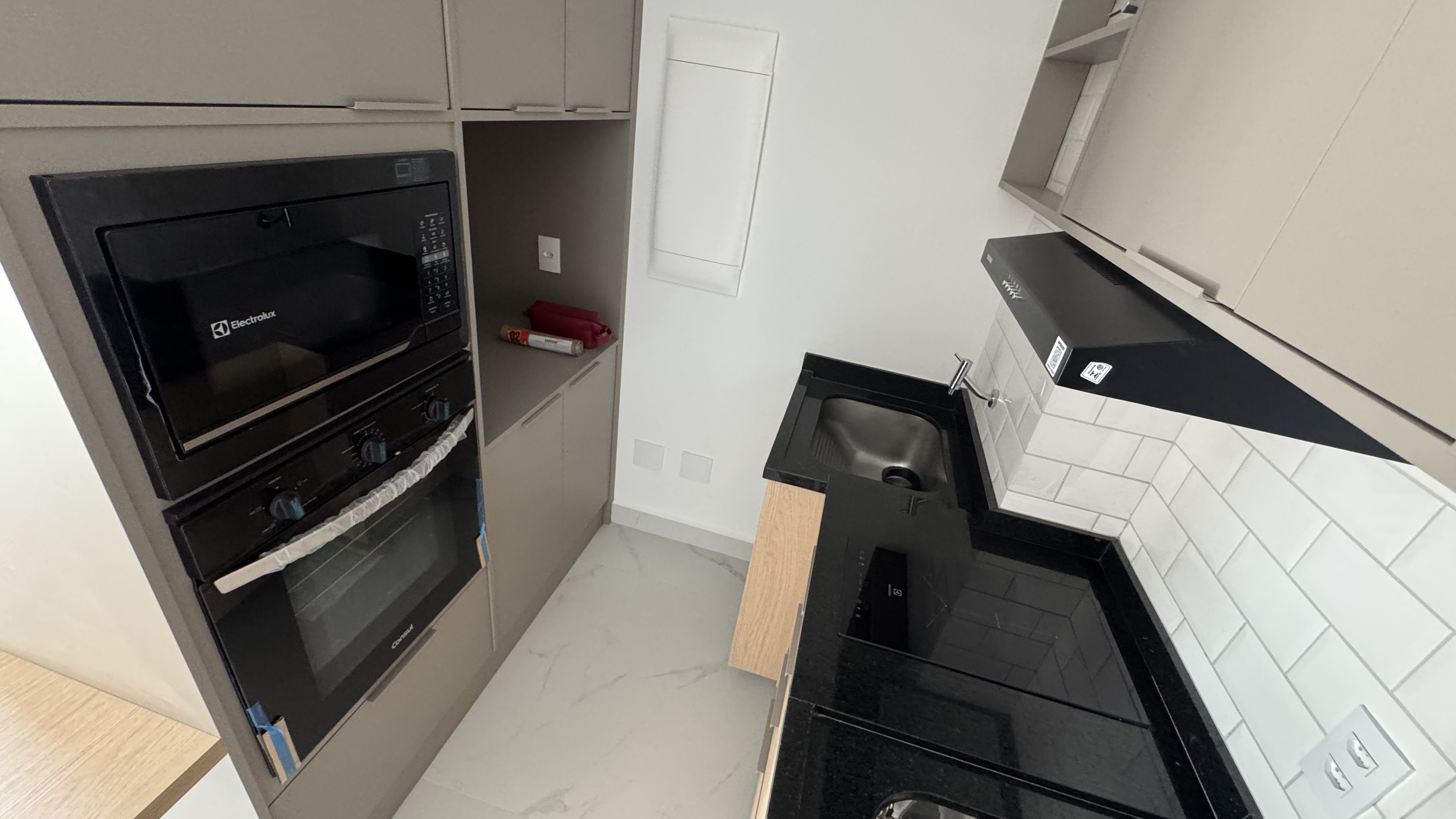 Apartamento Studio com área privativa de 44,00 m², mobiliado e decorado com móveis planejados, 1 suíte com closet, banheiro e lavatório, área de serviço, cozinha, sala de estar, varanda gourmet, fechadura biométrica e com senha na porta de entrada, persianas 100 % blackout e automatizada com controle remoto, 1 vaga de garagem por apartamento com ponto de recarga para carro elétrico, medição individual. Depósitos privativos no subsolo, sendo 1 depósito home box por apartamento com 2,75 m².
