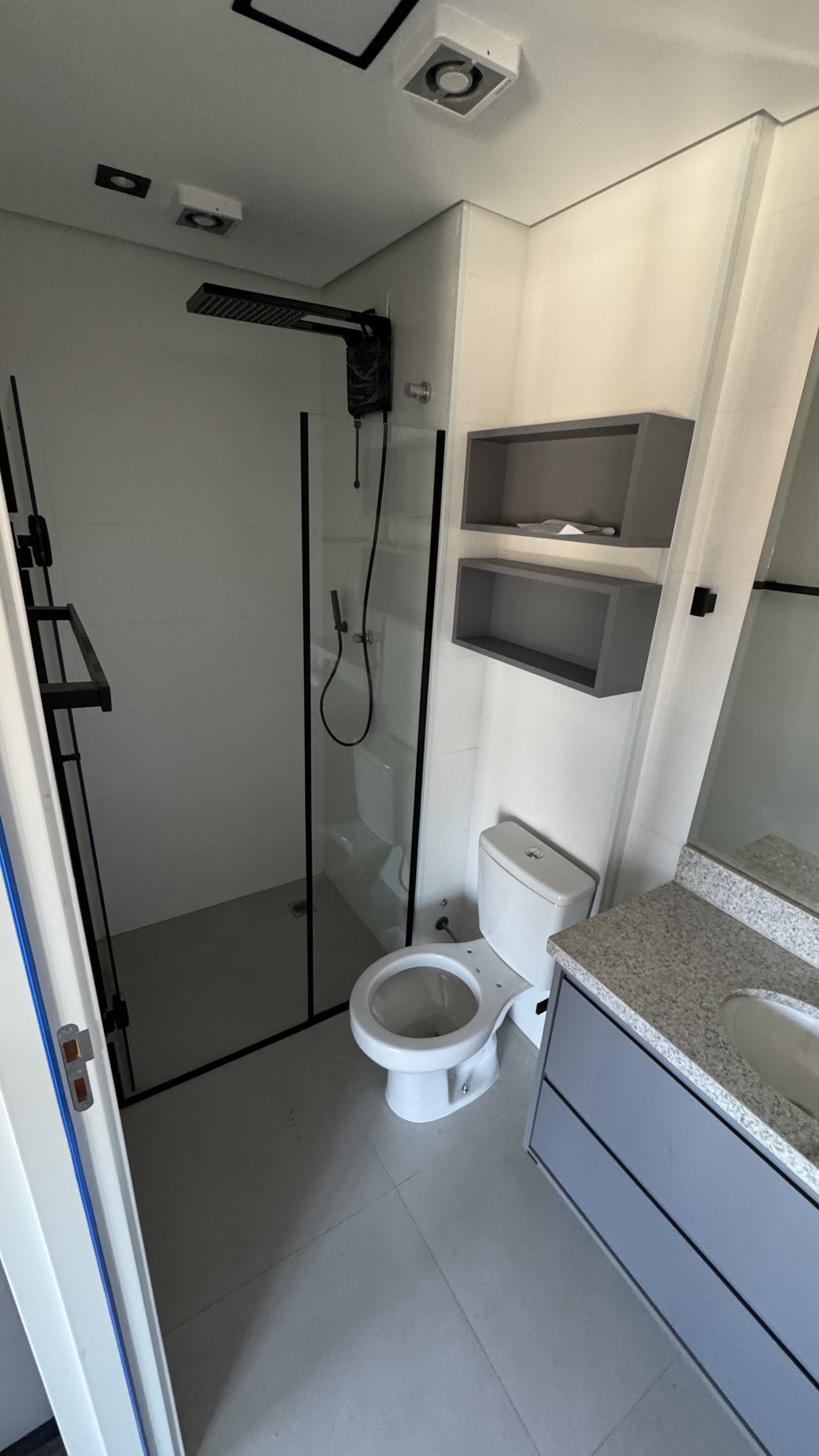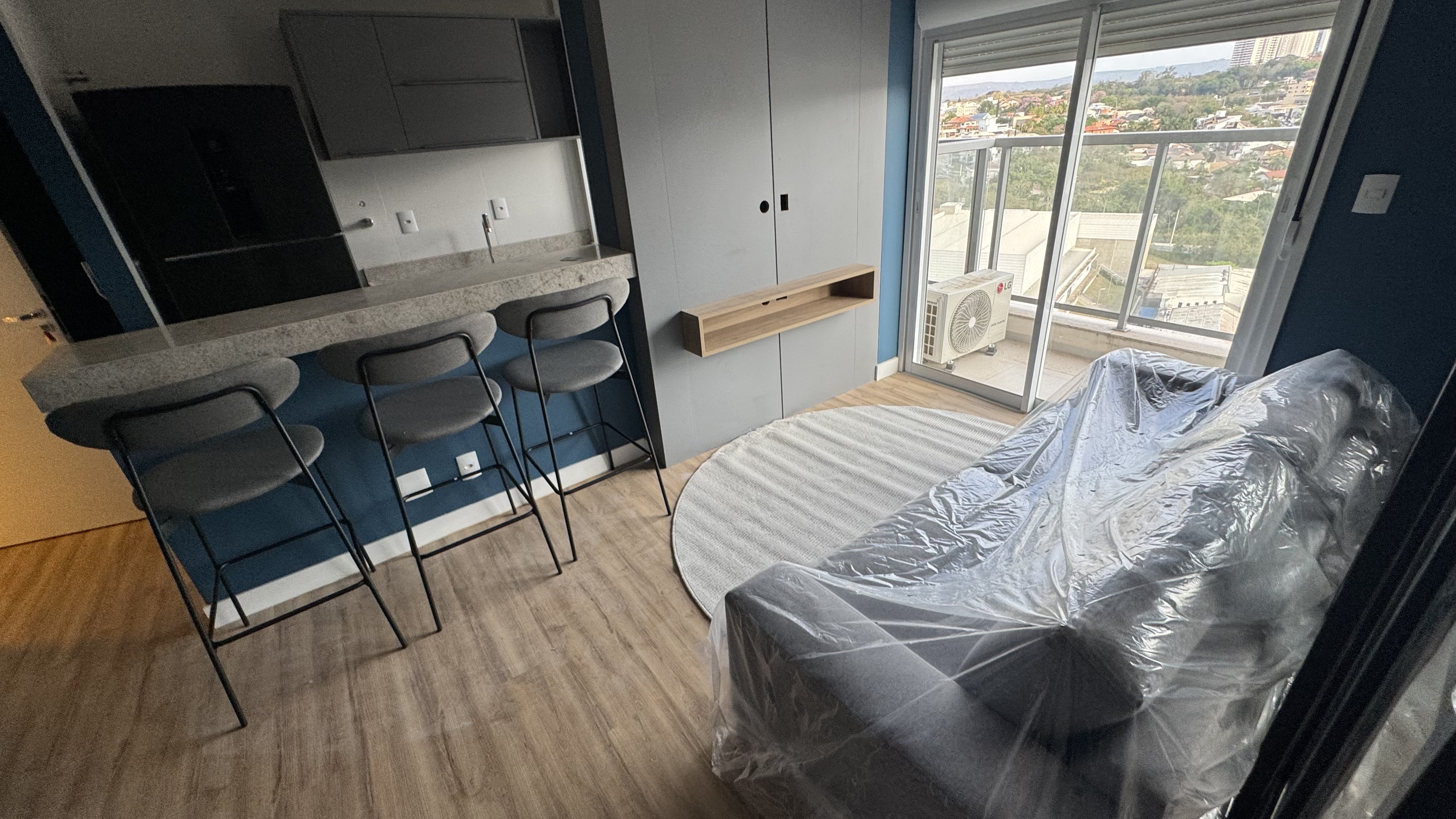 Apartamento Studio com área privativa de 37,00 m², localizado no 16º andar, mobiliado decorado com móveis planejados, sendo um quarto com suíte, sala dois ambientes, varanda, cozinha americana e garagem com uma vaga.